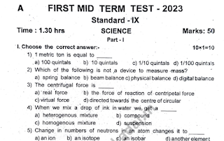 9th Science First Mid-term test Question Paper English Medium: 9th Science First Mid-term test Question Paper English Medium PDF Download, In this post we had given this pdf download. You can download this pdf by clicking the below download button.