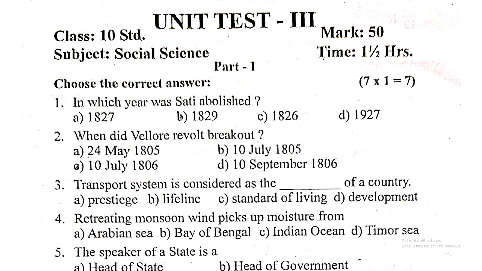 | Topic | 10th Social Science Unit Test - 3 Question Paper EM 2023 Erode Dt |