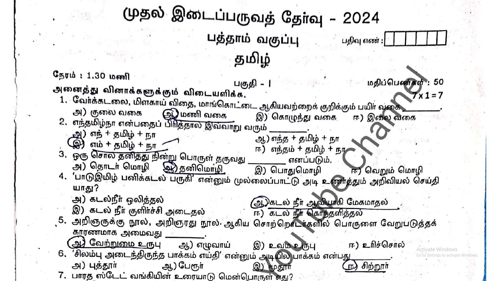 | Subject | Tamil |