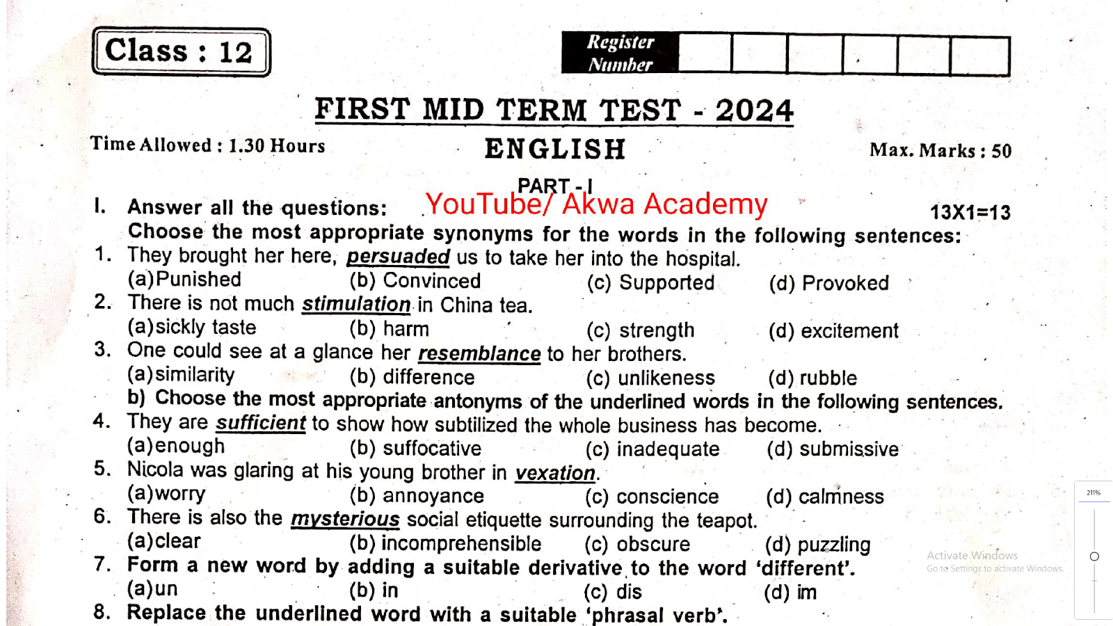 | Topic | 12th English First Mid Term Test Question Paper 2024 Tirupathur Dt |