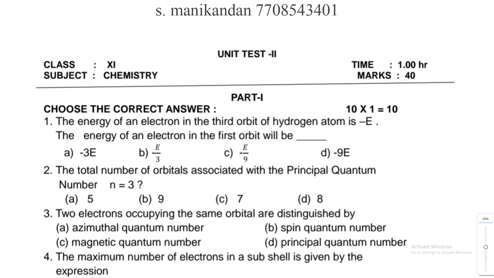 11th Chemistry Unit Test Question Paper English Medium 2024 : 11th Chemistry Unit Test Question Paper English Medium 2024 PDF was Prepared by the S.Manikandan.,M.Sc.,B.Ed., Pg asst in chemistry. as per the newly updated 11th Chemistry Text Book. This 11th Chemistry material will surely help the 11th Standard Students to score good marks in their 11th Chemistry Public Examinations. We had given the 11th Chemistry Full Study Material for free of cost, and we uploaded the 11th All Subjects Full Study Materials to our website. For more study materials like this visit the 11th Chemistry Study Materials and Question Papers. We hope that the 11th Chemistry Material is so useful for you so kindly share this material with your friends and make this material useful material for your friend too...