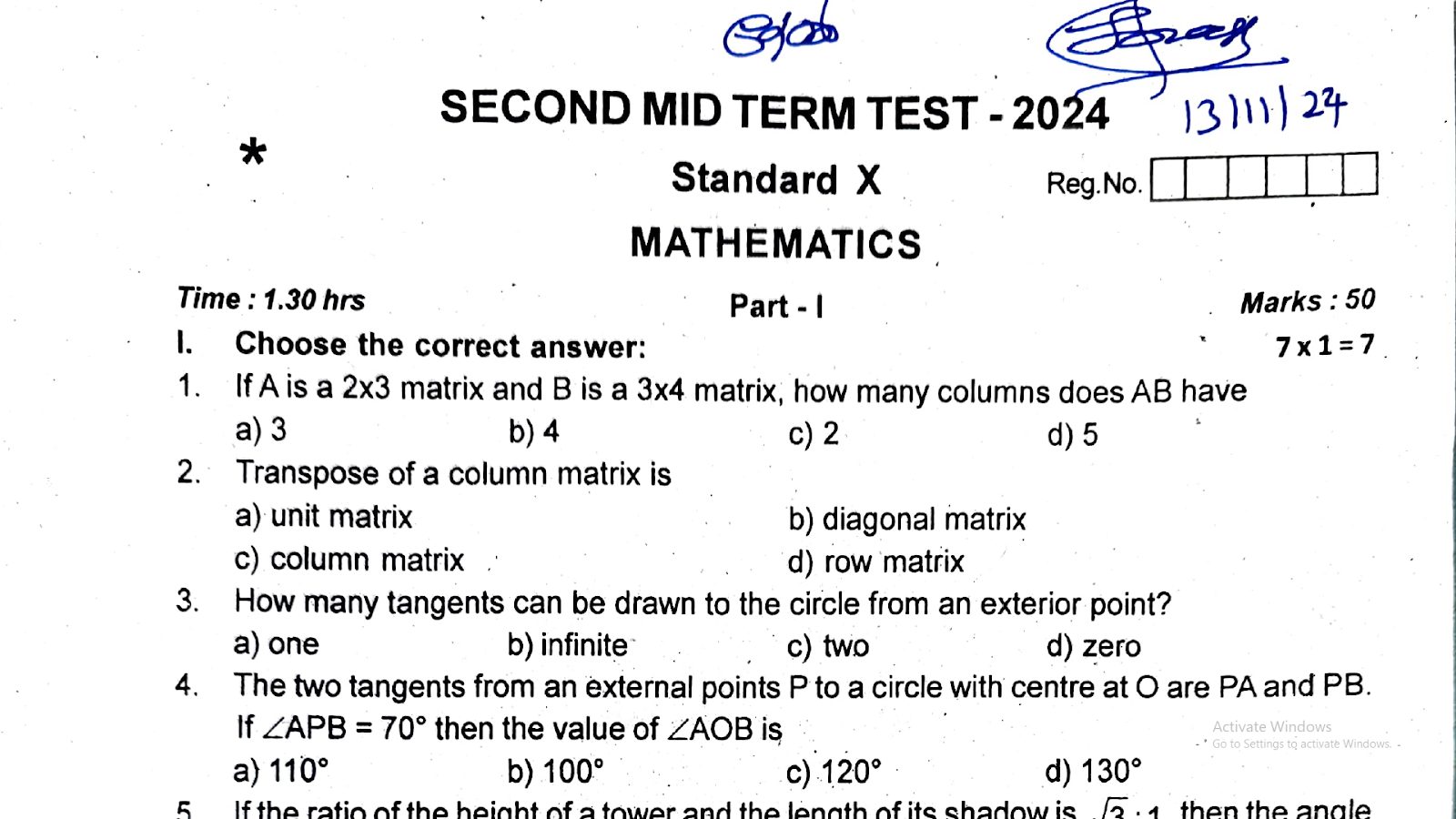 | Topic | 10th Maths 2nd Mid Term Test Question Paper EM 2024 Theni Dt |