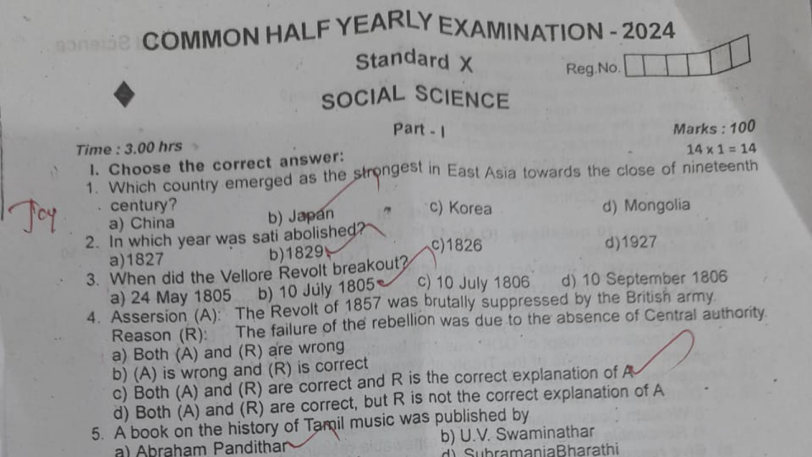 | 10th Social Science Half Yearly Question Paper English Medium 2024 Vellore Dt |