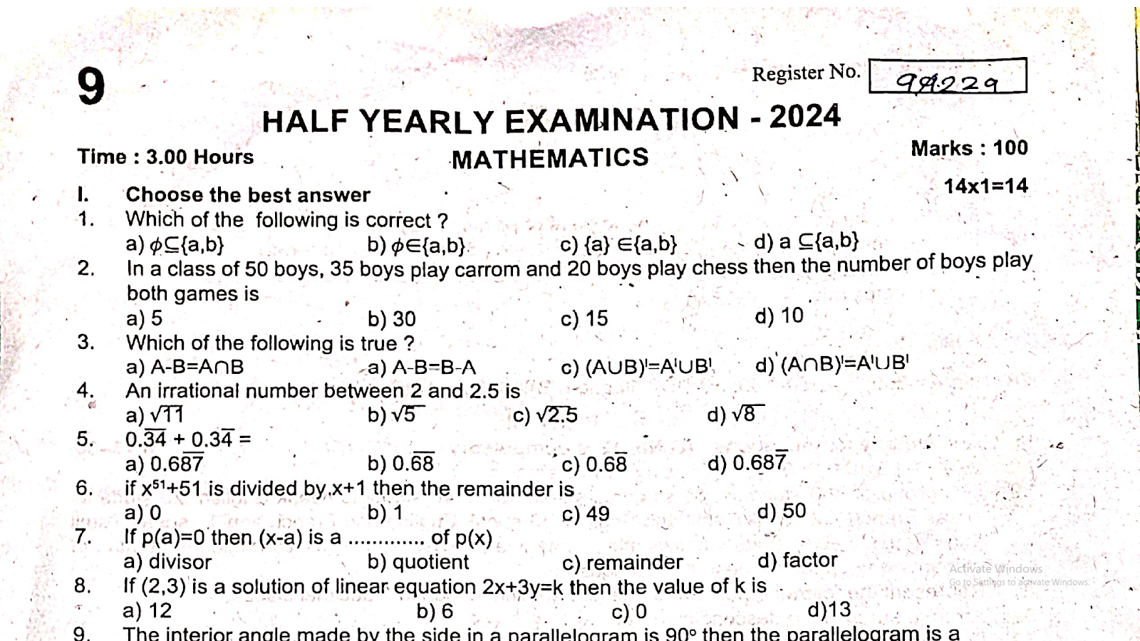 | 9th Maths Half Yearly Exam Question Paper English Medium 2024 Erode Dt |