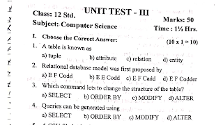 12th Computer Science Unit Test - 3 Question Paper English Medium 2025 Erode Dt : 12th Computer Science Unit Test - 3 Question Paper English Medium 2025 Erode Dt PDF was Prepared by the | S.Venkatachalapathi,M.A.,M.Ed.M.Phil, Erode District as per the newly updated 12th Computer Science Text Book. This 12th Computer Science material will surely help the 12th Standard Students to score good marks in their 12 Computer Science Public Examinations. We had given the 12th Computer Science Full Study Material free of cost, and we uploaded the 12th All Subjects Full Study Materials to our website. For more study materials like this visit the 12th Computer Science Study Materials and Question Papers. We hope that the 12th Computer Science Material is so useful for you so kindly share this material with your friends and make this material useful material for your friend too...